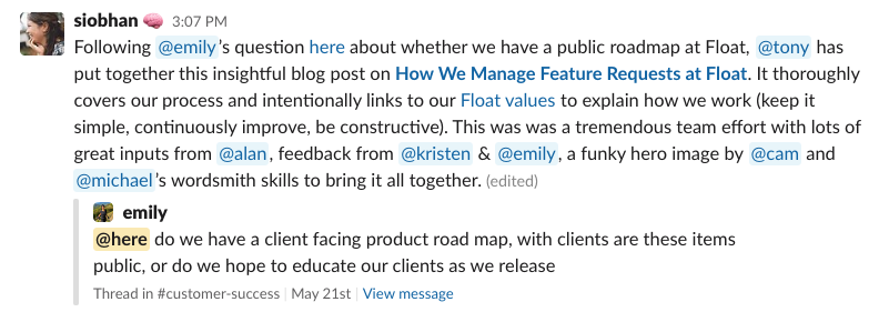 A recent example of this is an internal debate we’ve had about making our product roadmap public or not. While it’s something we’ve considered, given that we work agile and our priorities can shift quickly, our roadmap dates can often change. With that in mind, we asked Senior Technical Product Manager Tony to write a blog post explaining more openly to customers how we manage feature requests. We felt that this would improve how we could respond to a very common question and provide more meaningful insight to customers.