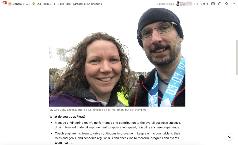 First, I followed the Float onboarding instructions closely, particularly the steps relating to introducing myself to the team and putting together a little get to know you page in Notion, where we maintain our evergreen documentation.