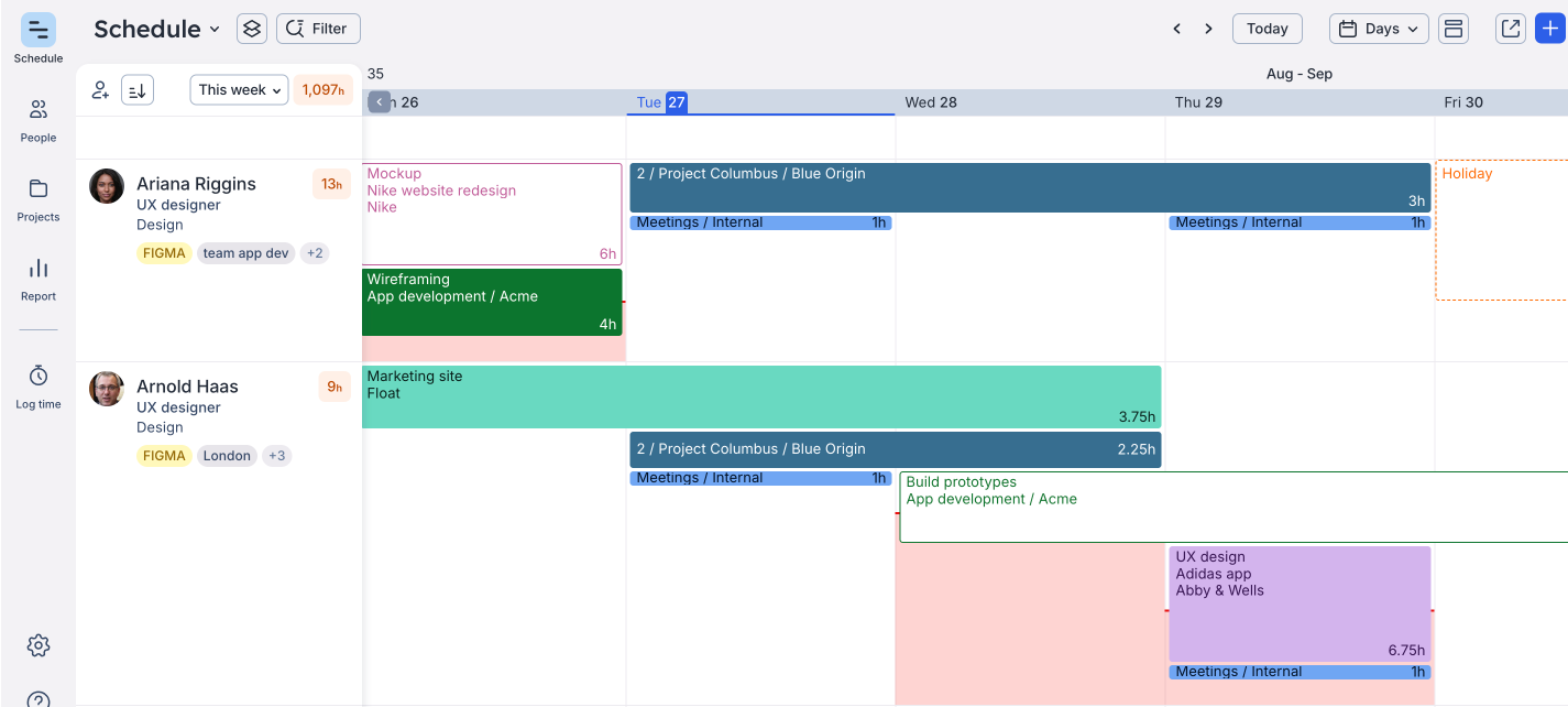 What you need is resource management software like Float for a centralized view of your team’s capacity, skills, and allocations.