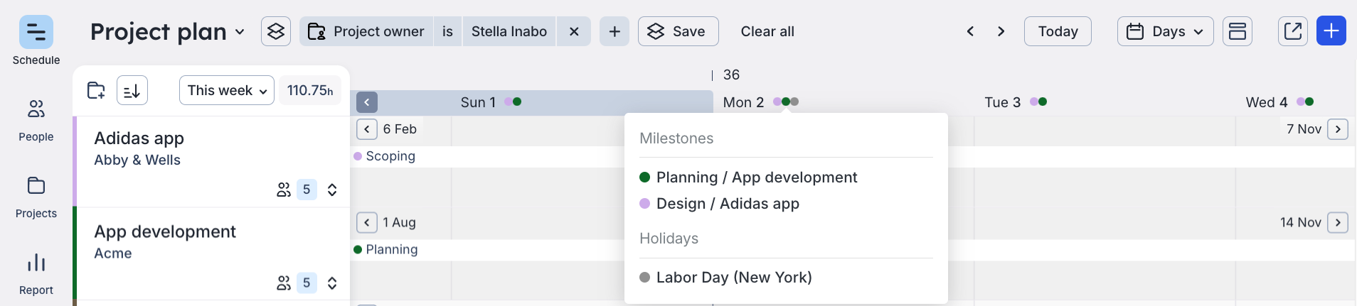 - Flag milestones and key due dates with stakeholders and teams alike. You can spot them looming and plan accordingly.