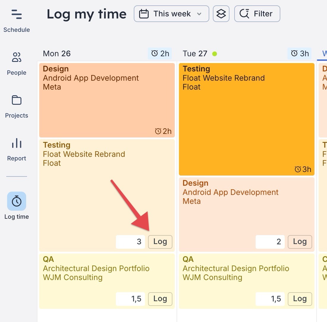💡 Hint: if you're finding it difficult to estimate how long your team is taking to complete tasks, try tracking their time. Using Float's time tracking feature, you can measure how long your team is spending on their assigned tasks. Not only will this help you to understand if your estimates are correct, but it'll also allow you to make more accurate predictions in the future.