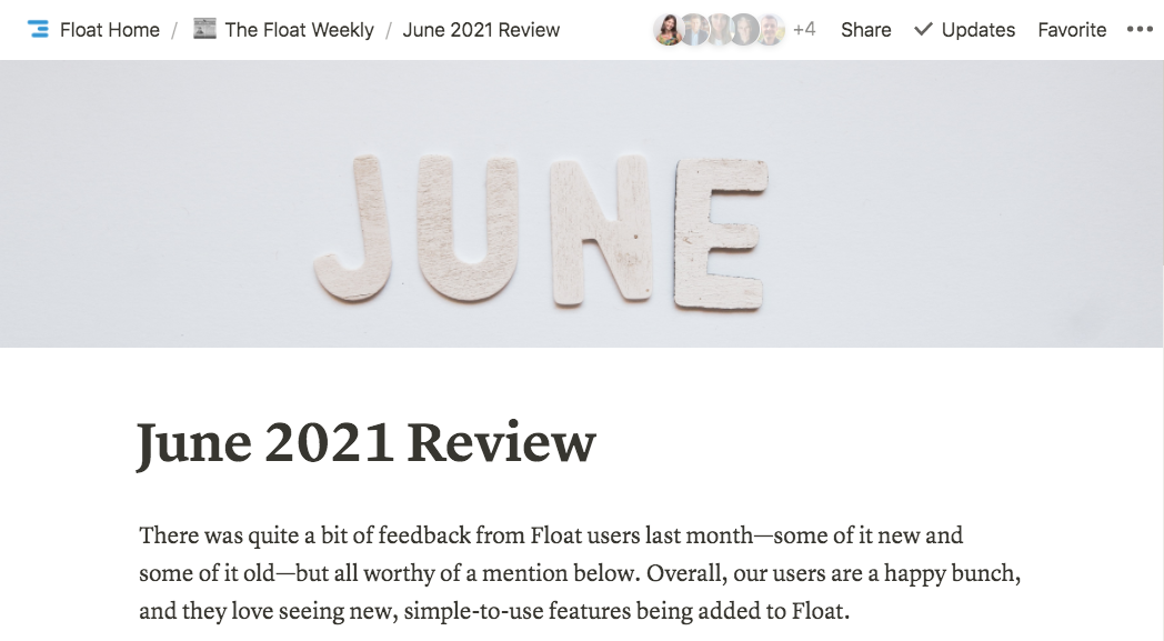 When your team trusts that they are supported to do their best work, they feel more confident looking for improvements and better work methods. At Float, we have a company value of accountability, which means that we all take ownership of our work. Another value is to continuously improve both the product our customers use and how we work as a team.