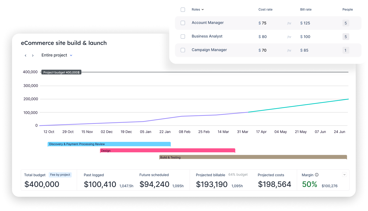 - Real-time visibility into margin, utilization, and contractor costs