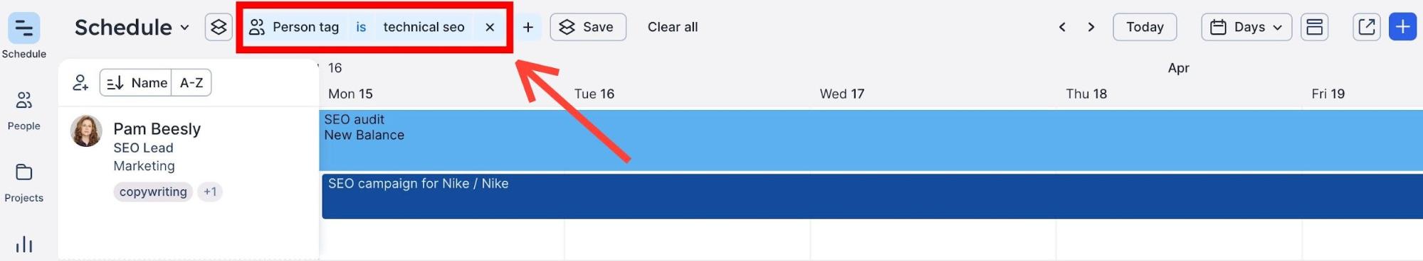 - Scheduling projects based on skill, not just time: an expert or specialist works faster, so use your resource management tool to create custom skill tags for team members and find the right person for the job in seconds