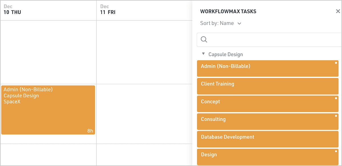 Click the sidebar button at the top of the page to view your WorkflowMax jobs and tasks. Then simply drag and drop a task from the sidebar onto the schedule to create a new task in Float.