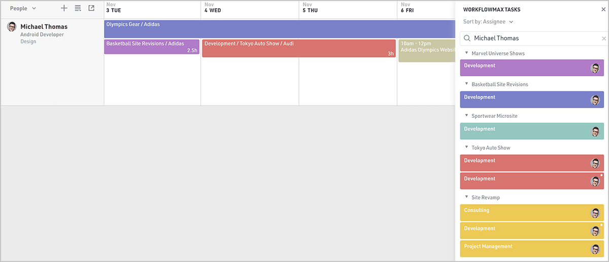 Tasks that have been assigned already in WorkflowMax will display the person's avatar next to them, making it easy to schedule them to the correct person in Float.