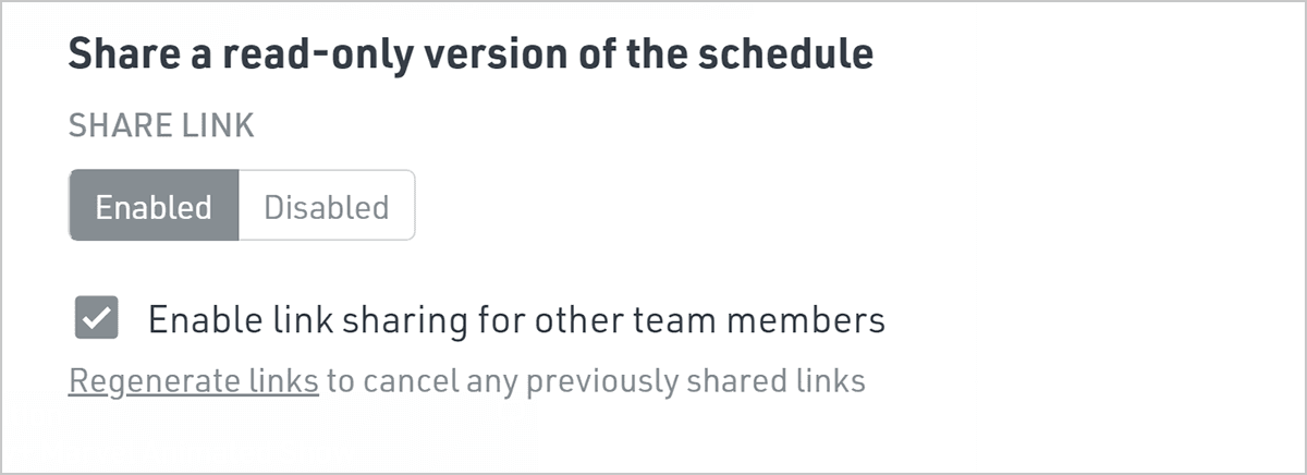 Access to share a link is restricted to the account owner initially, but they can turn the feature on for the rest of the team from the settings menu.