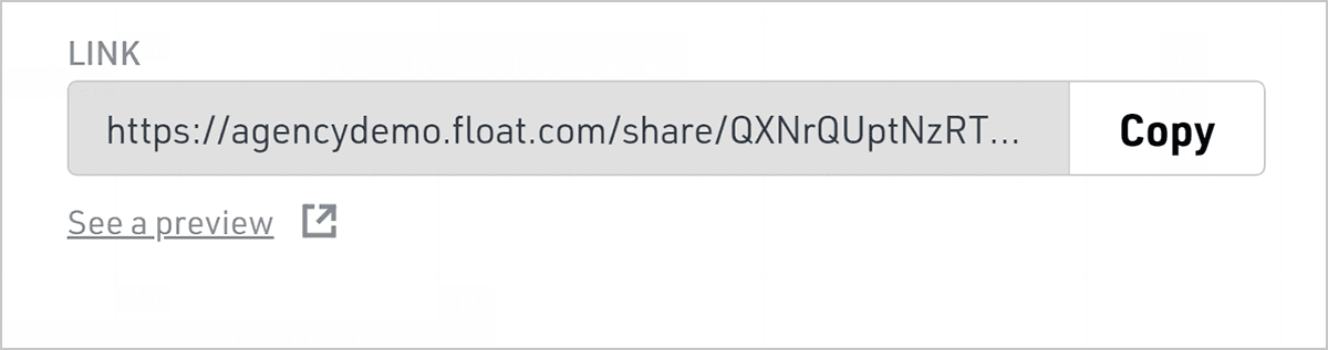 The view options for each person are based on their individual access rights in Float. If a person has access to view only their own Schedule, for instance, any link they share will be limited to that view as well.