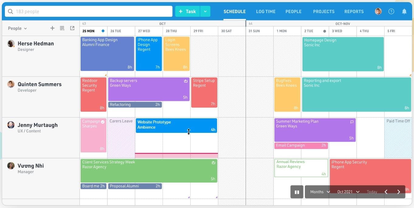 Creating PERT charts today is much easier when using a resource management tool like Float. You can get a birds-eye view of an entire project before it starts, avoiding potential bottlenecks.