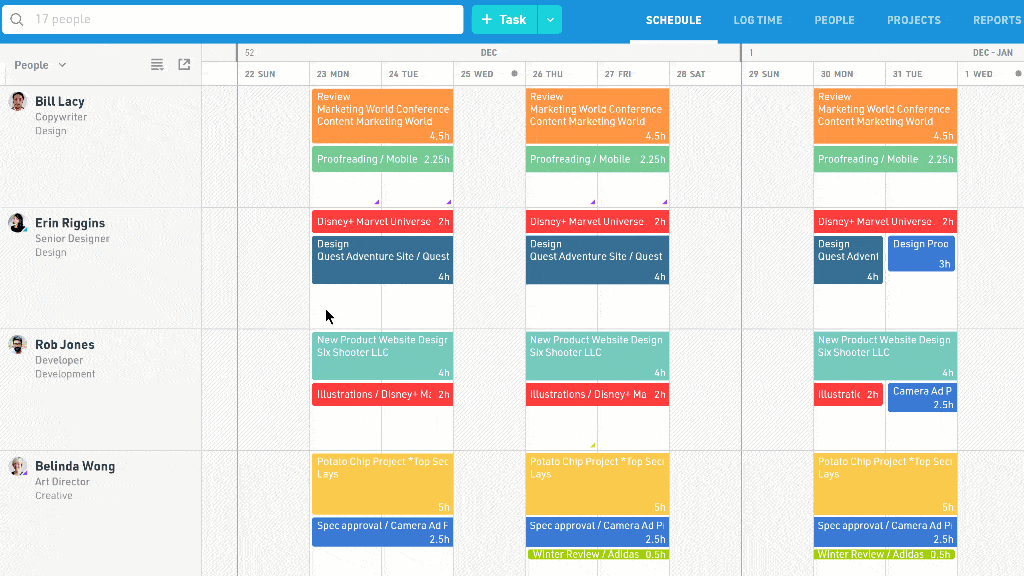 The Jira integration makes it easy to import your people and projects into Float and create new tasks by dragging and dropping your Jira issues directly onto your teams' schedules.