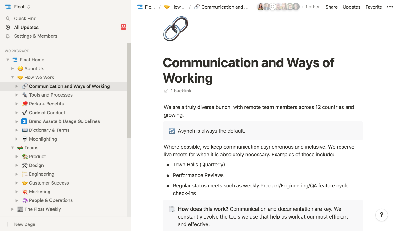Even during a global pandemic when the world is adapting to remote work on the fly, our standard of minimal meetings and flexible hours seems to be a novel idea to a lot of people. Many of the applicants for our open roles specifically list asynchronous remote as their primary reason for wanting to work at Float. Our way of working is only made possible through the trust that our co-founders Glenn and Lars place in all members of the team, and the team's commitment to working this way.