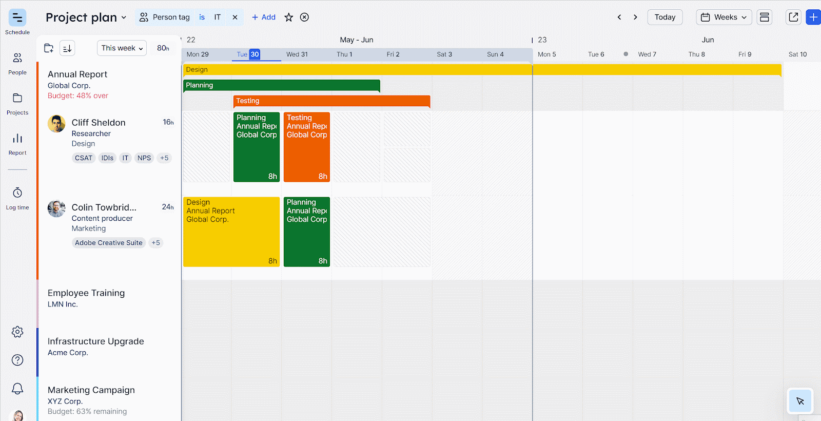 When discussing allocations, capacity, and workloads, you need a single source of truth that presents it all in a digestible way. A dedicated resource management tool is ideal for this purpose, serving as a central point to monitor team workloads and identify where adjustments are needed.