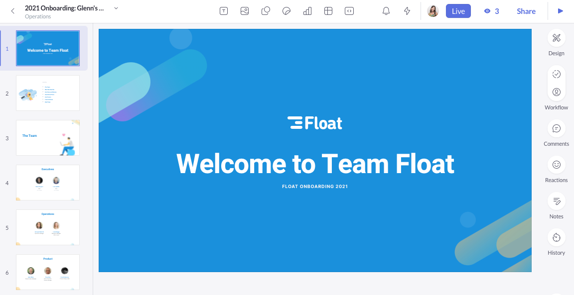 It’s a much more intuitive experience for presenting, and its collaboration features are helpful when you’re working asynchronously. We also love how easy it is for us to customize with our own brand design and style, which has been great for the onboarding presentation we use to welcome new team members.