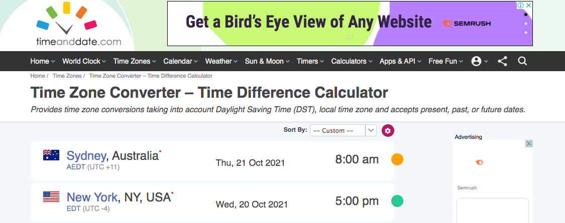 8. Time and Date World Clock Convertor — Time zone conversions for multiple locations