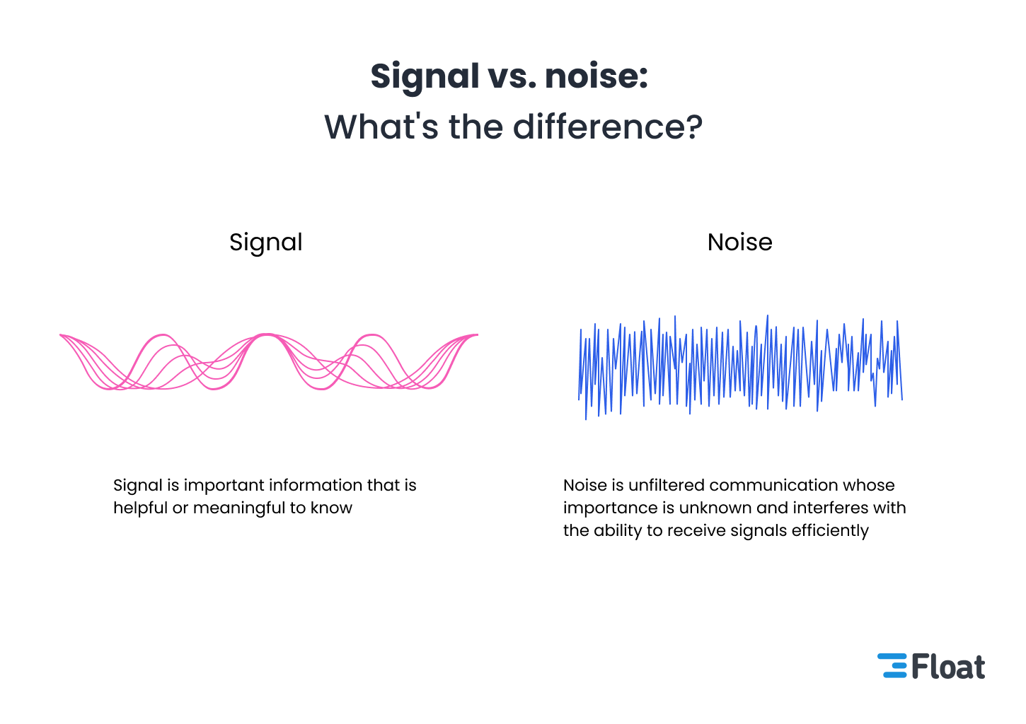 Asynchronous communication doesn’t mean radio silence. What would usually be covered in a synchronous meet is replaced with a direct message or document. At Float, the majority of our team communication happens via Slack. As our team has grown, the volume of communication has also increased. We routinely review our processes to stay mindful of the signal vs. noise ratio to combat this.