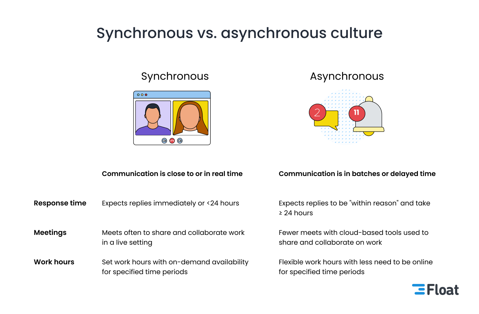 At Float, we’re big advocates of asynchronous work. As a fully remote and global team, asynchronous communication is practically a necessity. It also gives us the freedom, flexibility, and autonomy to self-design our best work life.