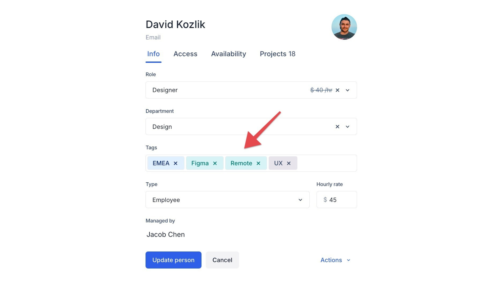 To support this, Instrument runs a “borrows and loans” program. When a project needs extra support, like a designer for marketing, they borrow from other teams—prioritizing both skill and interest. The producers use People tags in Float to find the right mix of talent and availability across the org.