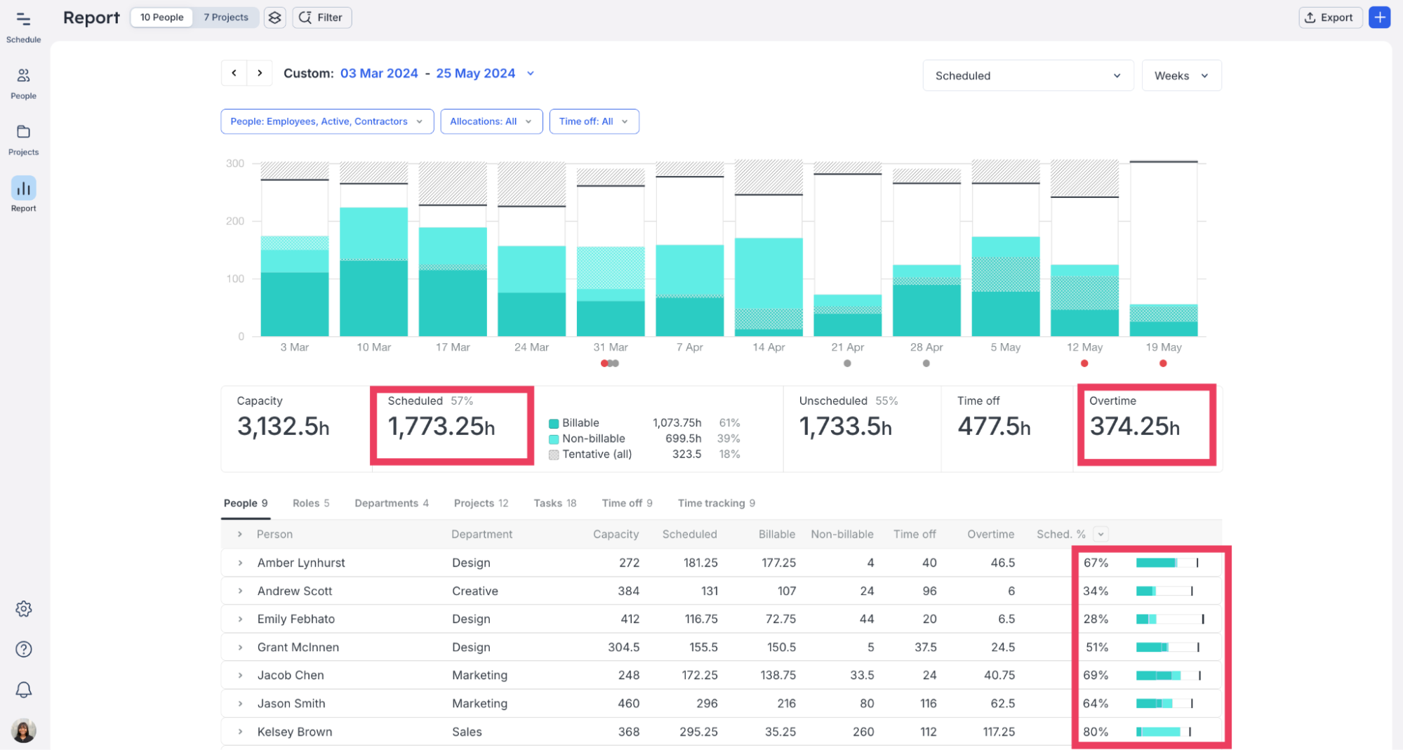 Those are a lot of moving parts to stay on top of for a single report. But if you’re using a resource management tool, these metrics are already automatically tracked and recorded, and viewing a report is as simple as clicking a tab.