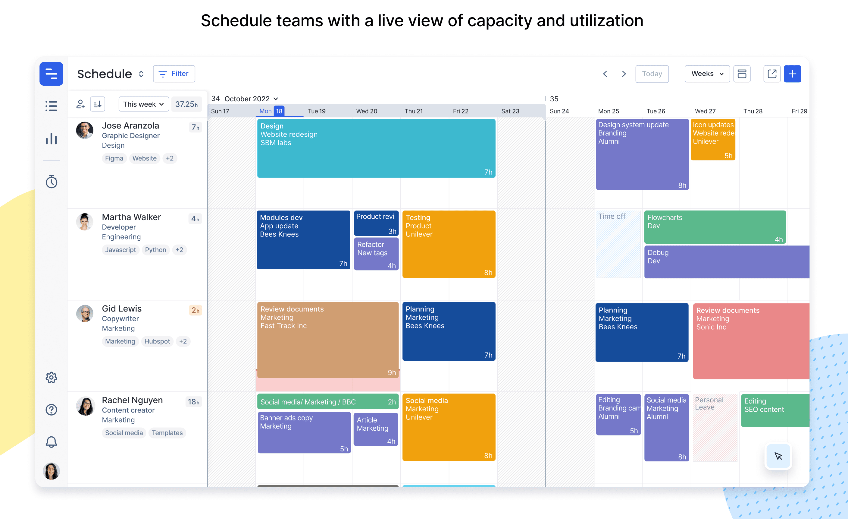 - A new schedule view with live insights into capacity, utilization, and availability at a team and individual level for precise project planning and forecasting.
