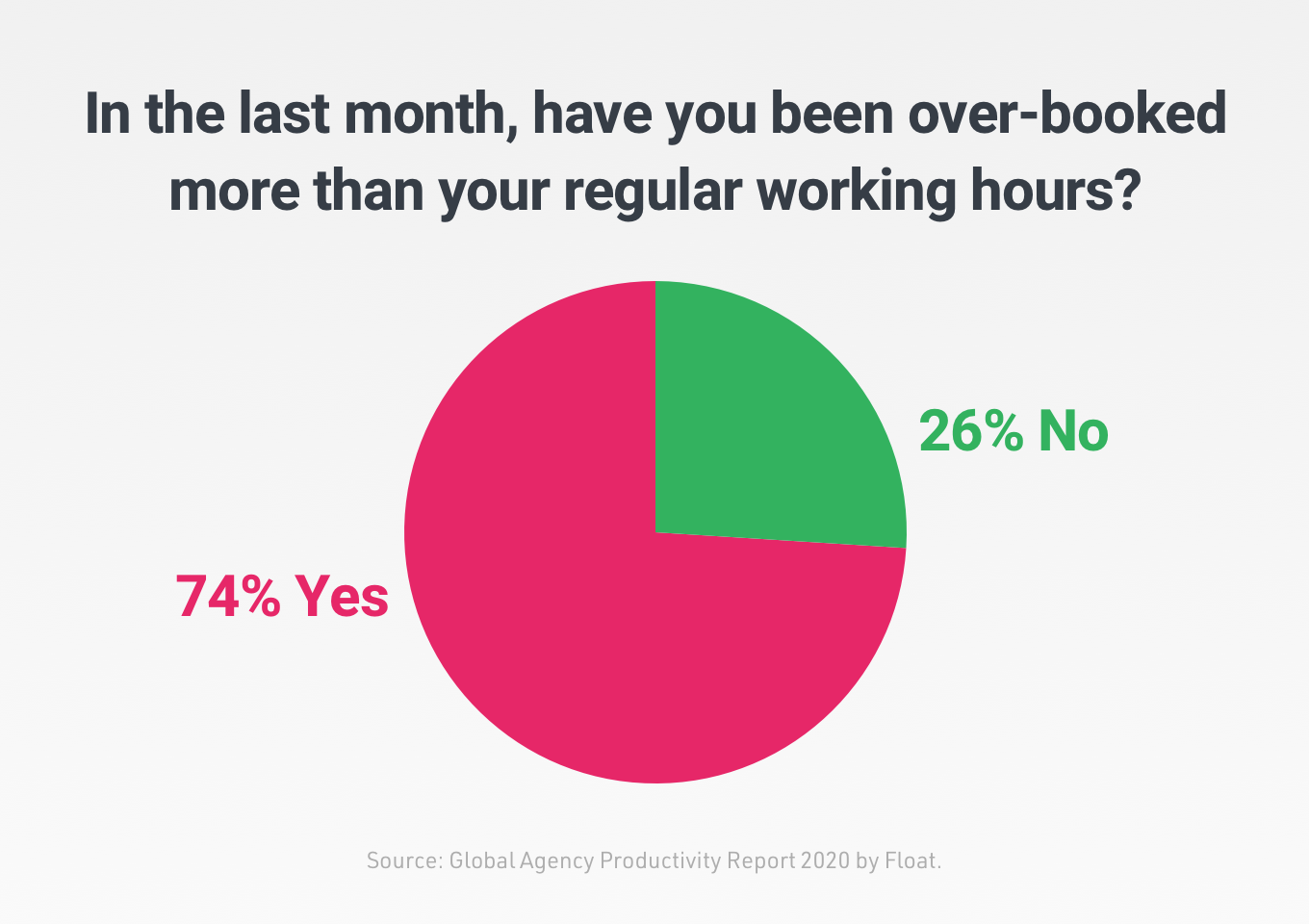 The biggest challenge identified by agencies is scheduling their team’s workload and time effectively. 74% of team members surveyed say they are overbooked on projects at least once a month, and 26% say this happens 5 or more times a month!