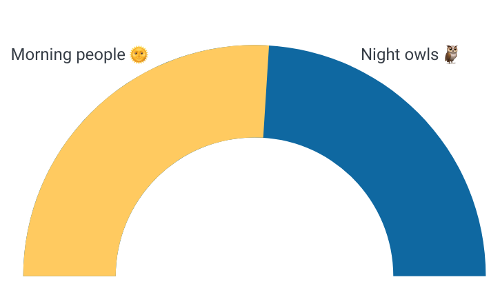 Productive hours are different for everyone, and there are many life variables that impact when and how you work. Flexible work hours (with a few hours that overlap with colleagues on functional teams) allow Float team members to set up their day in a way that works best for them. Even among ourselves, 52% of the team prefers mornings while 48% prefer evenings and nights.