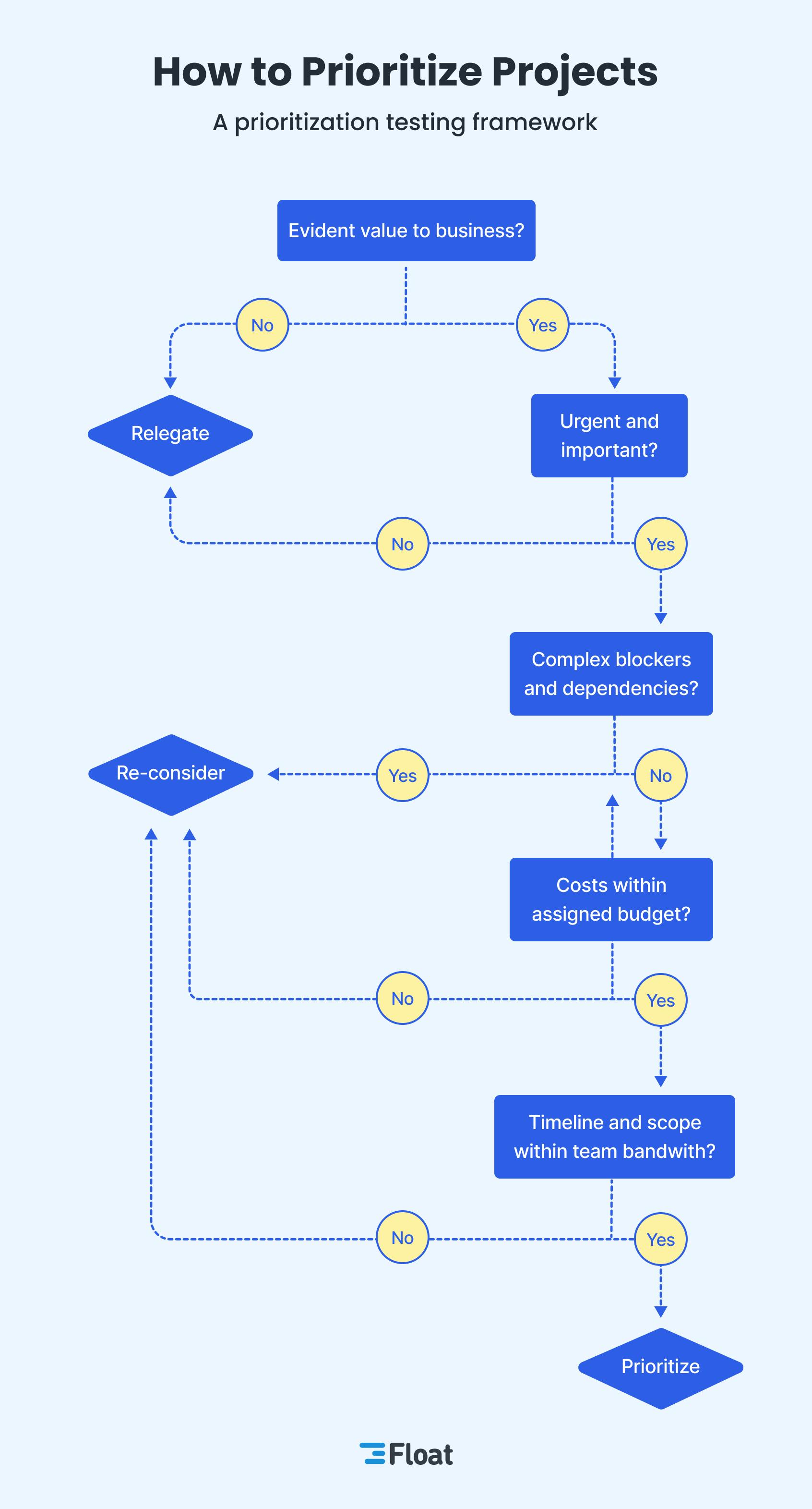 Your project prioritization methods should be regularly reviewed and updated to reflect changes in business needs, market conditions, resource availability, and other relevant factors. Depending on the organization’s pace and dynamics, these reviews could range from monthly to quarterly or even more frequently. With this information, you and your business can determine project priorities to increase decision-making velocity and streamline future projects.