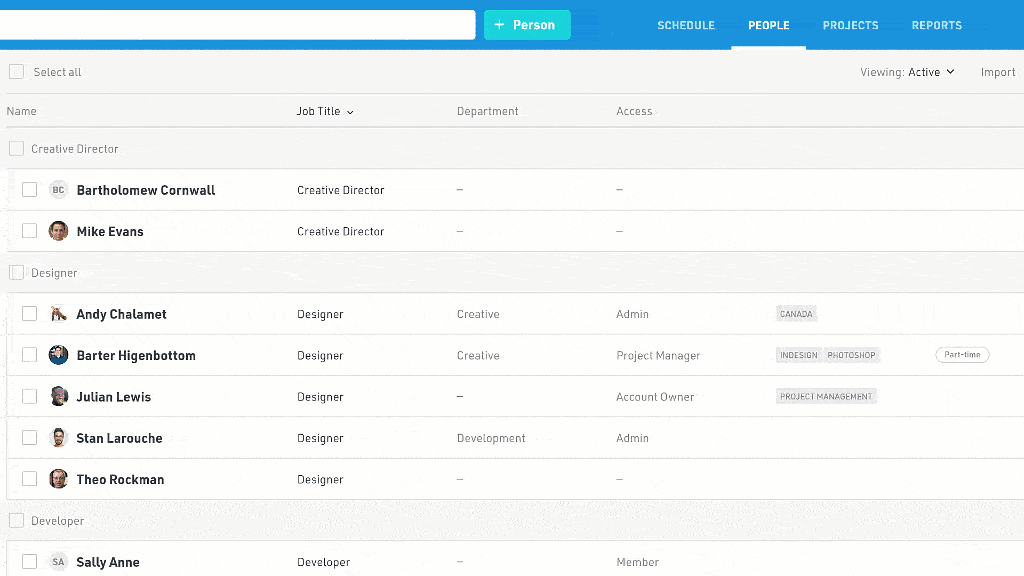 You can change the job title, department, account type, tags, hourly rate, and public holiday group for multiple team members at the same time.