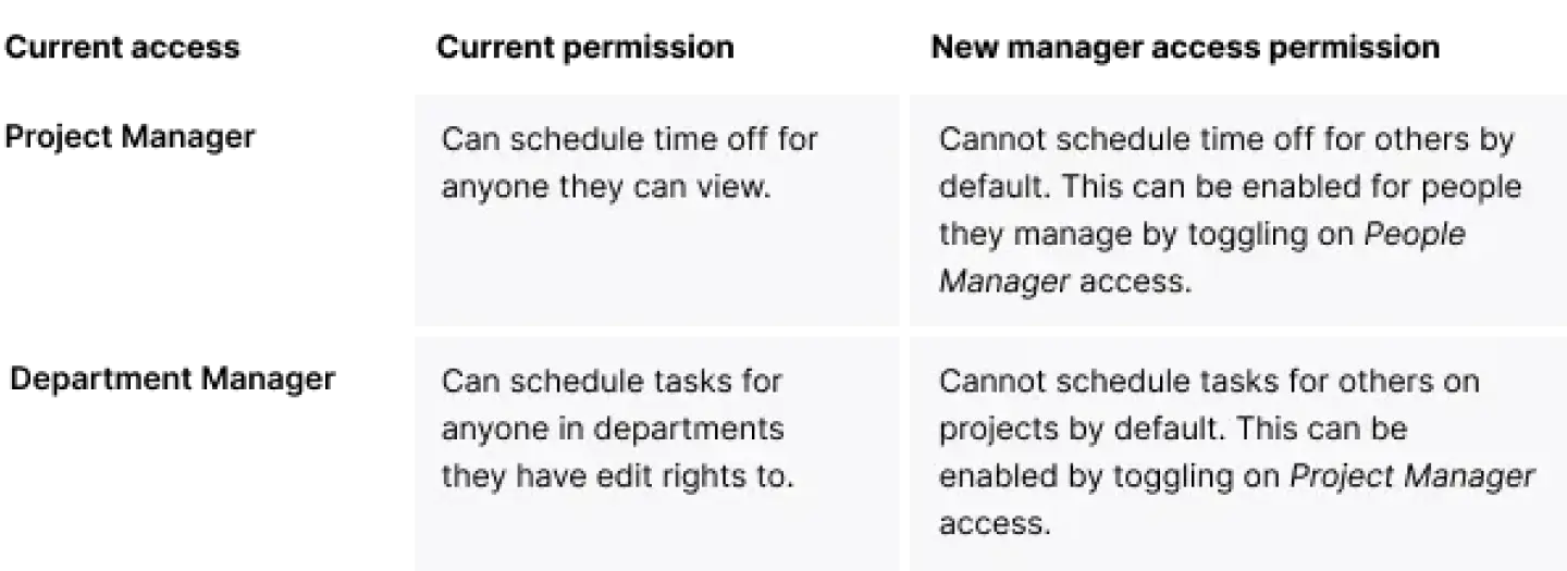 The new Manager role will not allow anyone to view or edit anything they’re not currently able to. Existing project and department manager permissions will automatically apply, with a few changes.