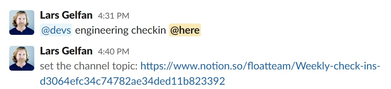 At Float, we have various meeting processes depending on individuals and teams. Our engineering department has a weekly sync, while our marketing team meets quarterly to discuss OKRs. Some team members have weekly 1:1s with their managers, while others do biweekly or monthly check-ins.