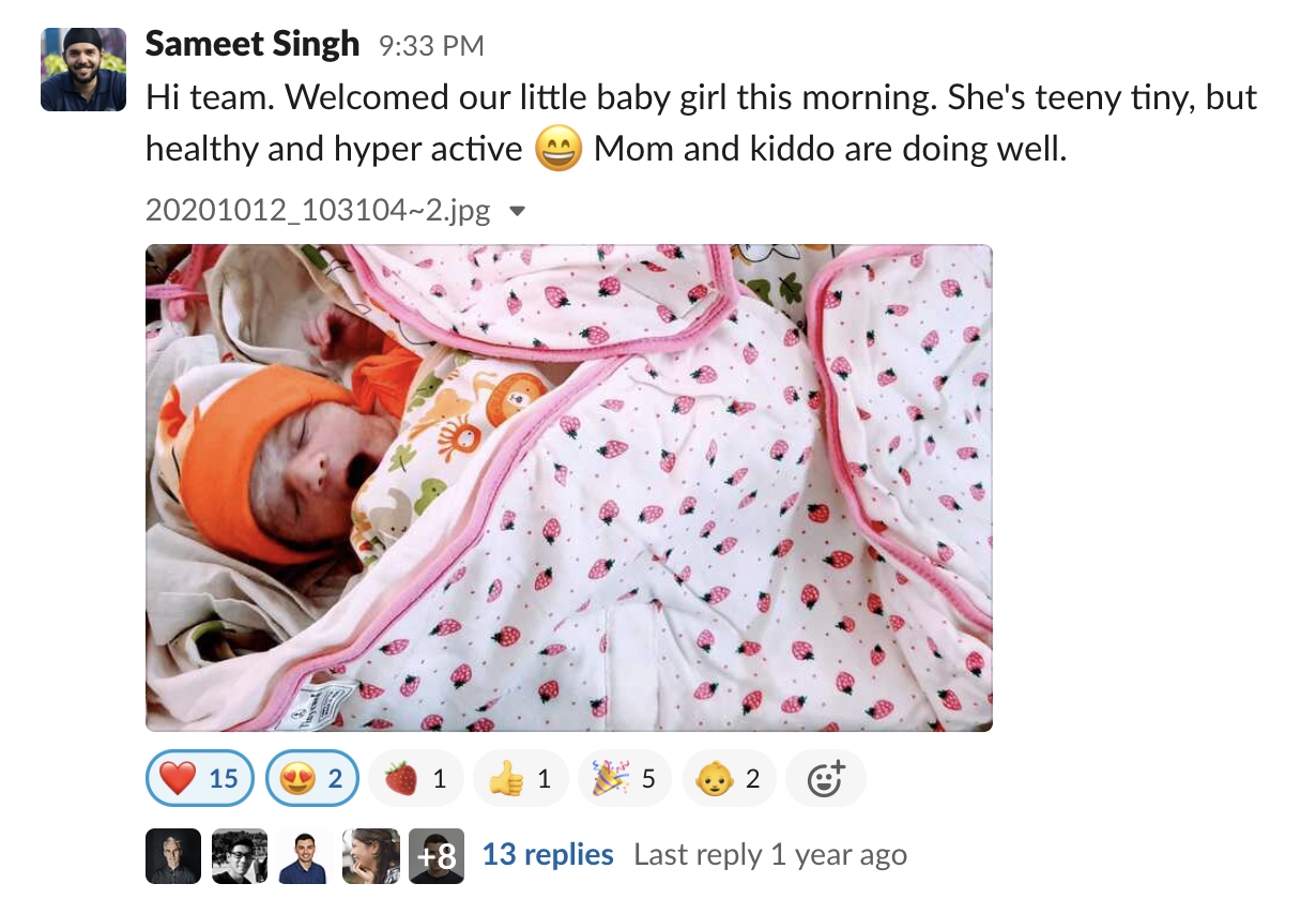 We believe that a best work life is one by self-design, and we're here to support our team to do just that. That includes helping our team make the most of their time and cherishing the special early moments with a new family member. We're passionate about maximizing our opportunities as an asynchronous remote team to provide perks and benefits that support our team to live their best work life.