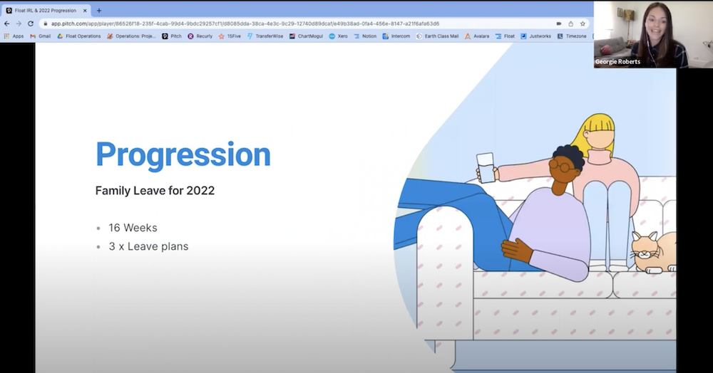 When we were a smaller team with just a few young families, paid parental leave hadn't always been a top priority in our P&B reviews (despite me having had my own paid parental leave experience in 2020!). Historically we offered just two weeks of paid leave. Fast forward to 2022, however—our team has grown to 35+ people—and we are welcoming more children into the broader Float family.