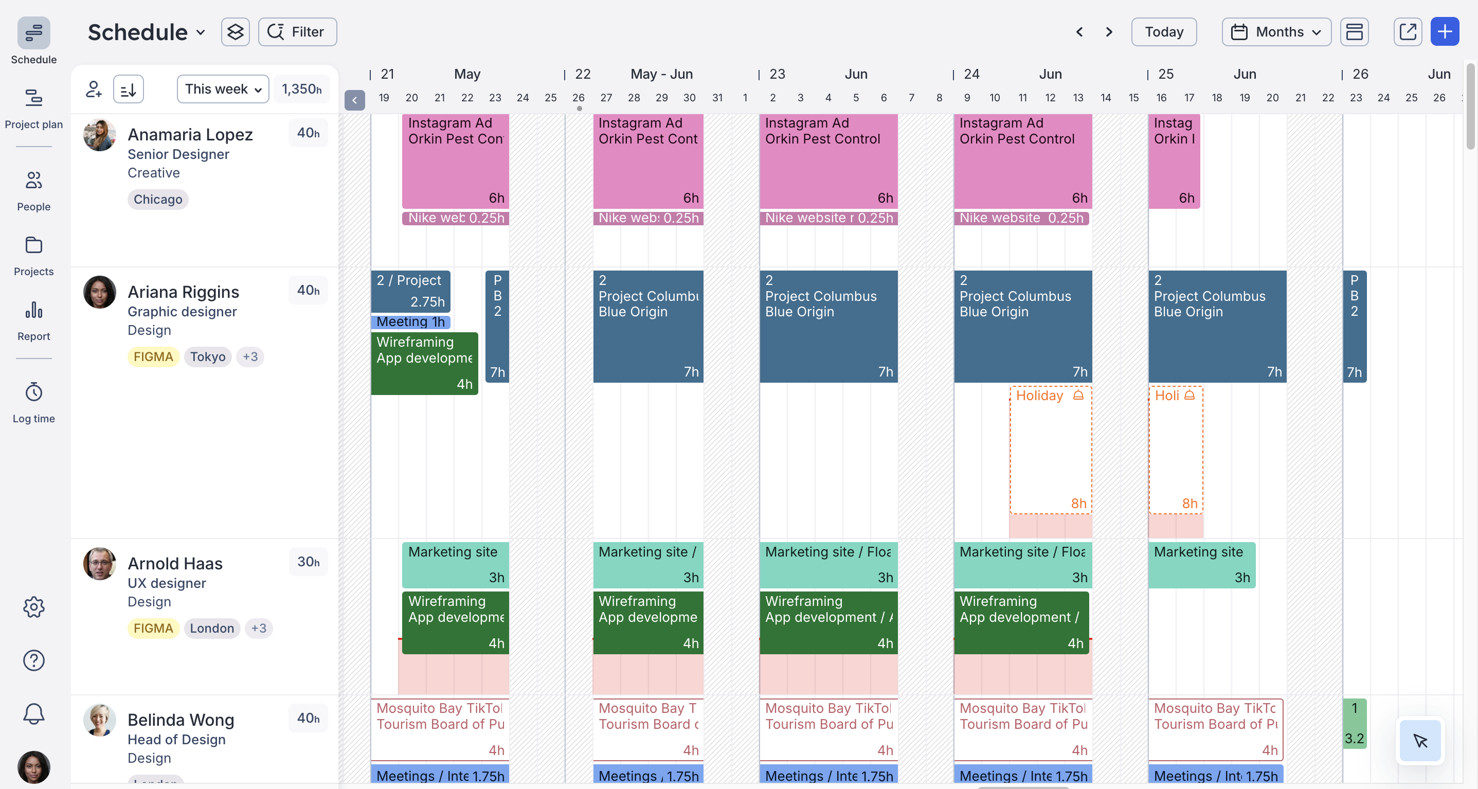 You can also determine if you should take on a project by looking at the work your team is currently doing and their future capacity in Float.