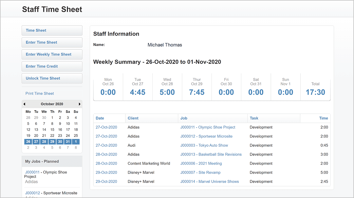 Your WorkflowMax jobs live in a handy sidebar and can be accessed whenever you need to assign a task to your team or see an overview of your jobs.