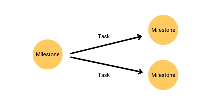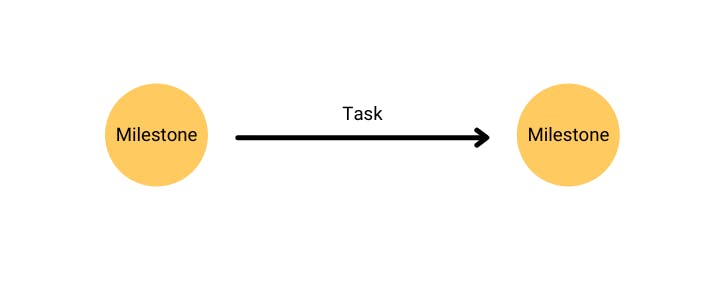 Building on the examples above, you'll start to create a fuller diagram of nodes representing milestones and tasks represented with arrows (which can be overwhelming when you start to map out an entire project's scope).